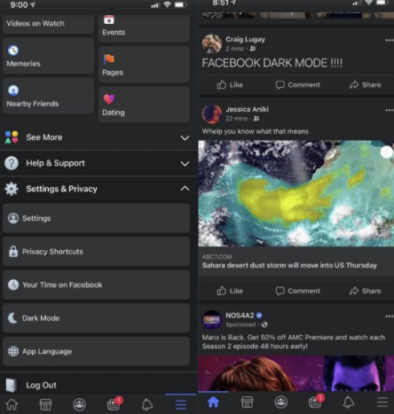 One of the users who has access to this, @NotFridayCraig, posted a sample of this Dark Mode for Facebook iOS on Twitter, and it shows how available the option is on Facebook app settings for some.