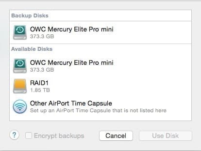 Now, click on the “Select Backup Disk” button. A window will appear which will be similar to the screen below.
