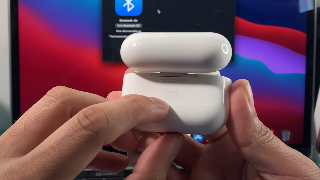 2. Enable Pairing Mode: Look for the setup button on the back of your AirPods case. Press and hold this button until the status light on the front of the case starts flashing white. This indicates that your AirPods are in pairing mode and ready to connect to your MacBook.