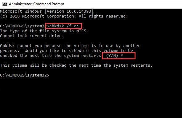 After that, a black window will appear, type “chkdsk /f c:” as shown below. Now run the command prompt by pressing the enter key. You will see the Y/N option afterward, type Y to verify the disk scan. The disk scanning process will begin and you will be notified if there is an issue on the hard disk or not. After the process is finished, check if the issue is still there or has been settled.