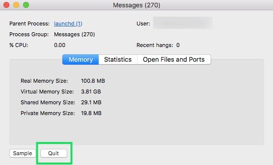 Double tapping on any application will raise a separate window with much more data about the application and its demands. From here you can decide to sample the application, which gives you a report of its progress over a brief timeframe. Just hit the “Quit Process” button, and it will force quit the program.