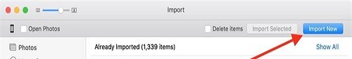 Figure 1: Click Import New to move photos from iPhone to mac.