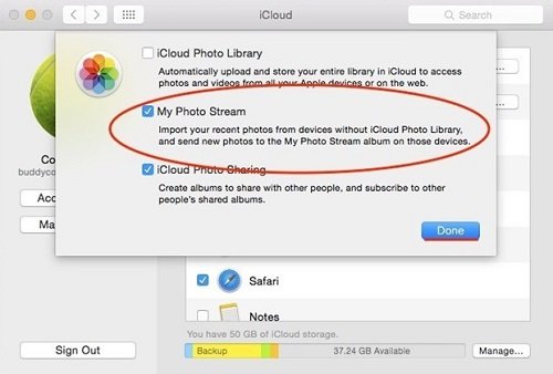 Figure 9: Check the box of My Photo Stream in Mac and click done