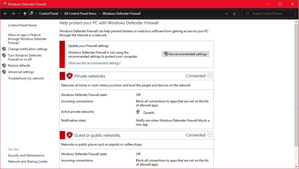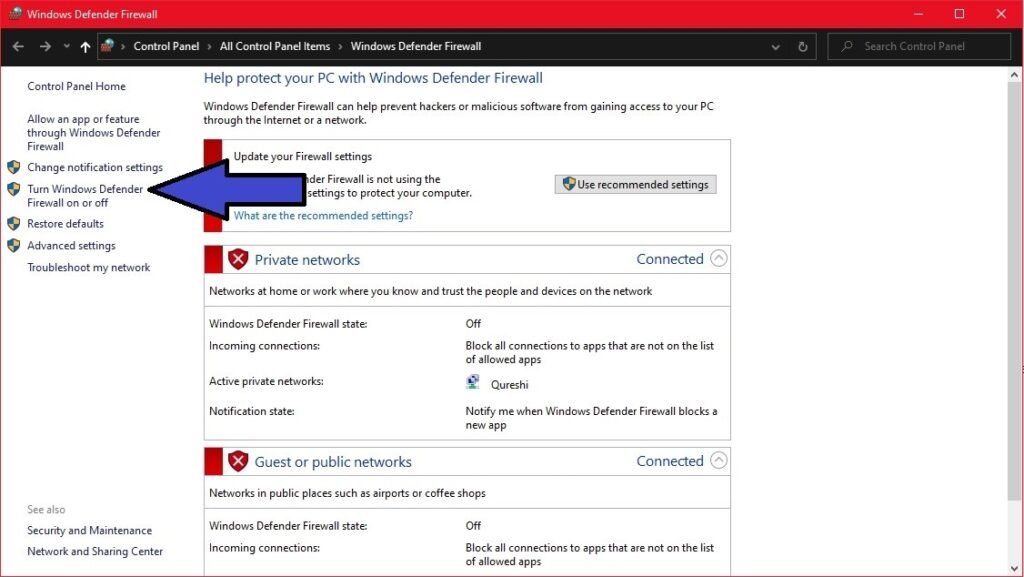 - Turn the Defender off for both the two kinds of modes it is on for.