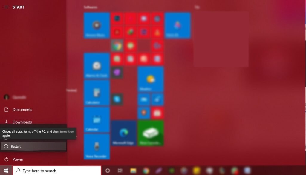 Windows: Can be restarted by simply going to the start menu and then finding the power button on the right bottom side.