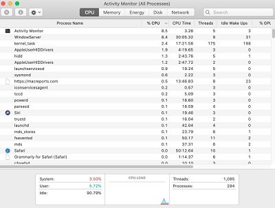The best option is to go to Activity Monitor and find which app is causing the problem. You can either go to Utilities or type Cmd + Space in Spotlight. In Activity Monitor, you will see the CPU at the top. Click on it and then click on %CPU. From the list, you can find the apps which are consuming more CPU energy. You can fix that by selecting those apps and forcing them to quit with the X button in the upper left- corner.