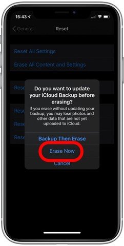 - In the affirmation menu that pops up, pick the subsequent choice, and then click on Erase Now. It’s significant that you don’t pick Backup Then Erase, or you will lose the past backup and won’t have the option to recover the erased text messages.