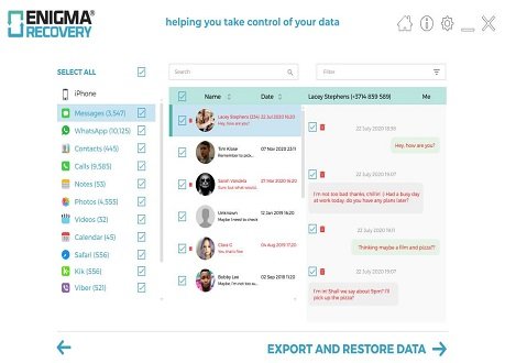 By installing Enigma Recovery software on your Mac or Windows computer, you can recover your deleted or lost messages. First, install Enigma and find your iTunes backup file. Select ‘Recover from my iTunes’ from the taskbar and browse to the desired iTunes backup file.