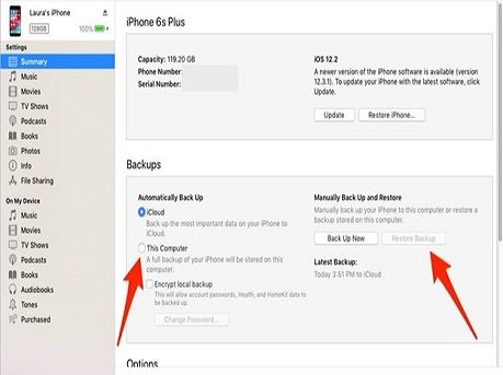 4. Recover Deleted Text Messages on the iPhone with iTunes for Pc and Older version of macOS