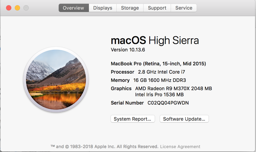 When buying a used or refurbished MacBook Pro, check if the serial number found at the bottom of the MacBook matches that in the software. To do this, click on “About this Mac.” Verify if this matches the serial number on the last field. The serial number contains the service and warranty information of the MacBook. For fairly new laptops, this could mean that it is still under warranty or an Apple care agreement. To check if your MacBook is covered, visit this Apple Warranty Status link.