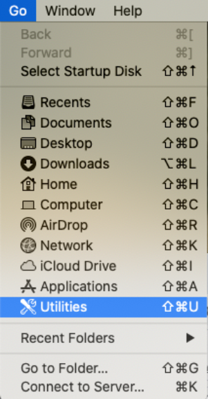 1. Go to your Mac’s Finder and open the Go menu option. Select the Utilities function.