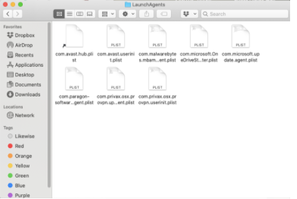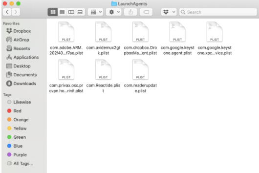 8. Analyze the LaunchAgents folder because you might also discover some fishy-looking items in there. Again, the names of the files may not give you a clue at all. They don’t appear that way. You can examine the recently added entities that are in the folder to further check.