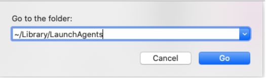 10. Type ~/Library/LaunchAgents in the search are of Go to Folder.