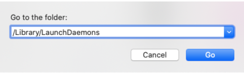 12. Open the Go to Folder and type in /Library/LaunchDaemons.