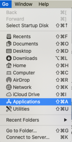 14. Find the Go menu icon and click Applications.