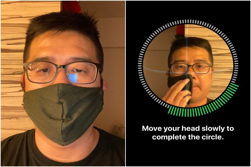 Image Source: https://www.straitstimes.com/tech/smartphones/unlock-your-iphone-with-face-id-while-wearing-a-mask - It is fine when you get a warning from your device saying that your face is blocked or obstructed. When you receive this prompt, move your mask father from the center of your face and see if it works.