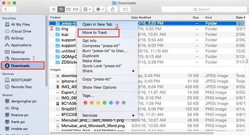 Click on Go in the menu at the top of the screen and select Downloads. You can also use keyboard shortcuts by pressing option, command, and L when the finder is launched. A list of all excess documents under Download will show up. Select the files you don’t need and right-click on it to enter the menu. Now select move to junk and then empty the trash bin.